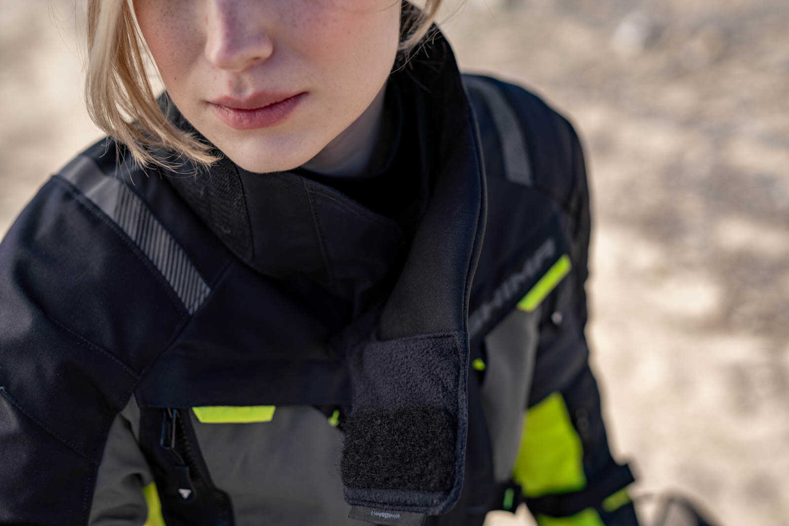 Продвинутая трёхслойная туристическая куртка с ширим диапазоном регулировок по температуре. Отлично подойдёт для использования в путешествиях и длительных поездках, где нет возможность взять с собой больше одного комплекта экипировки. В данной модели очень развитая вентиляция позволяющая использовать её даже в жаркую погоду. Особенно, стоит отметить огромный вентиляционный карман на спине. В отличии от большинства туристических курток подобного типа, защитные вставки тоже продуваются. Куртка оснащена полным комплектом защиты, включаю спину. Внешний слой изготовлен из материала CORDURA®. Есть возможность доукомплектовать куртку штормовым воротником, который я приобретается отдельно.